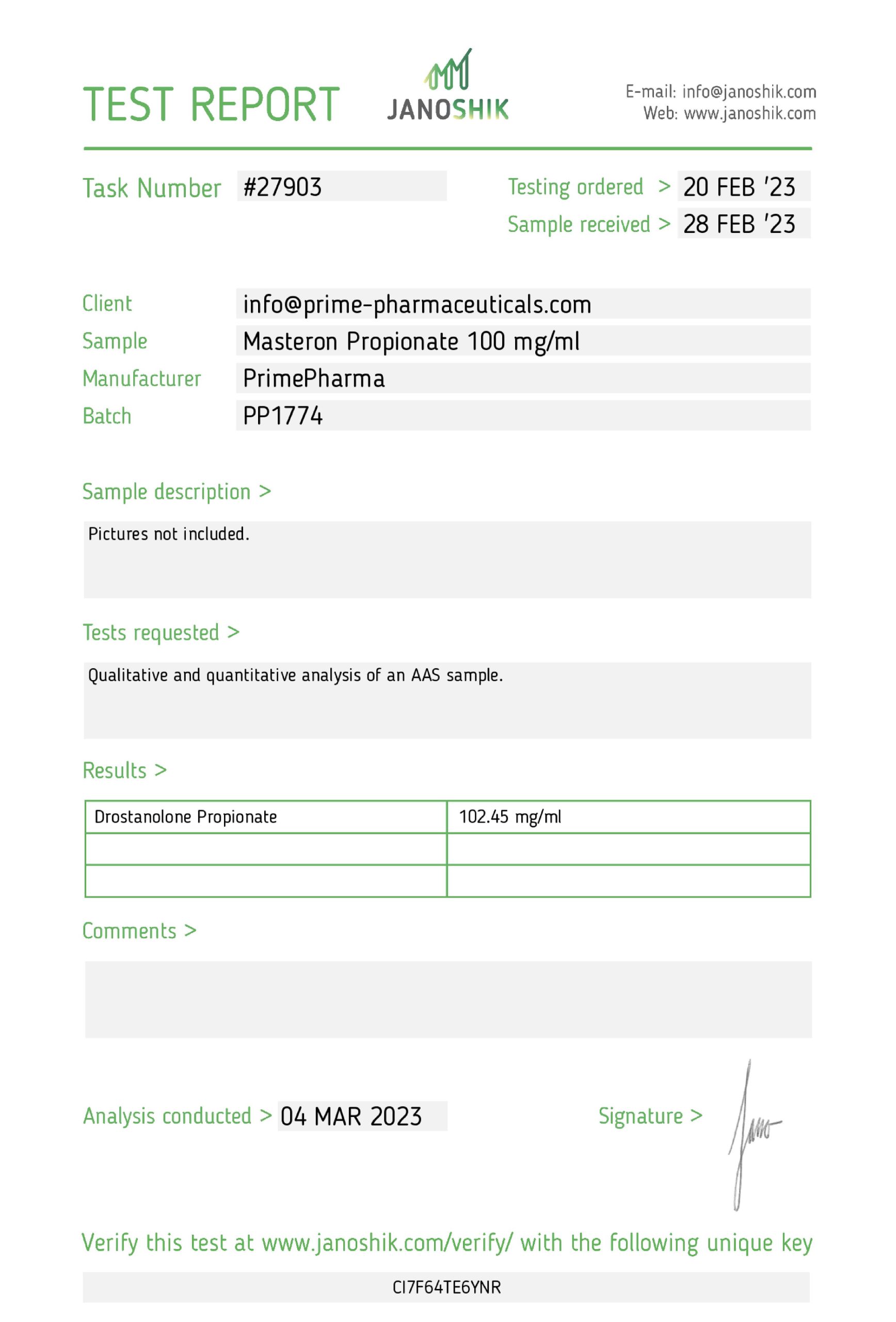 Como Masteron es un derivado de la dihidrotestosterona, proporciona al usuario un alto nivel de hormonas masculinas. Esto da como resultado un efecto de virilización que incluye una musculatura densa y duradera con poca retención de hidrosodio, pero sin ganancia de masa significativa. Esta es la razón por la que este producto se usa durante los ciclos de secado, a menudo en pila (mezcla) con otros esteroides de "secado" para acentuar este efecto. Así es como Masteron se vuelve muy eficaz para lograr un aspecto rayado.